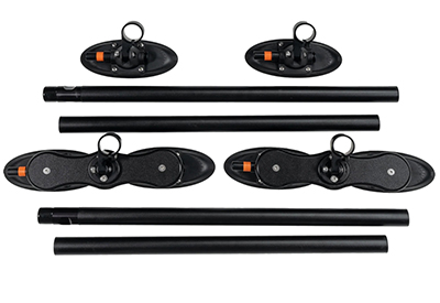 The Vacuum Mounts attach to 48″ or 60″ black powder-coated aluminum crossbars via solid marine-grade HDPE polymer and stainless-steel hardware. These assemblies can be moved to any position to ensure a perfect fit on the vehicle. The bars unscrew to make it easy to store them when not in use and are industry standard 1.325″/33mm dia. to accept other brands’ accessories.